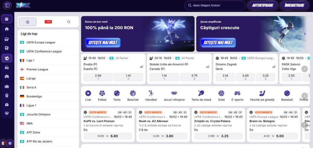 La Zinx, ca la majoritatea caselor de pariuri, fotbalul este sportul vedetă. Aici găsești cele mai multe meciuri și cele mai variate opțiuni de pariere. Poți să joci pe competiții locale și internaționale: Liga 1, Premier League, Serie A, La Liga, Bundesliga sau alte campionate europene și internaționale.