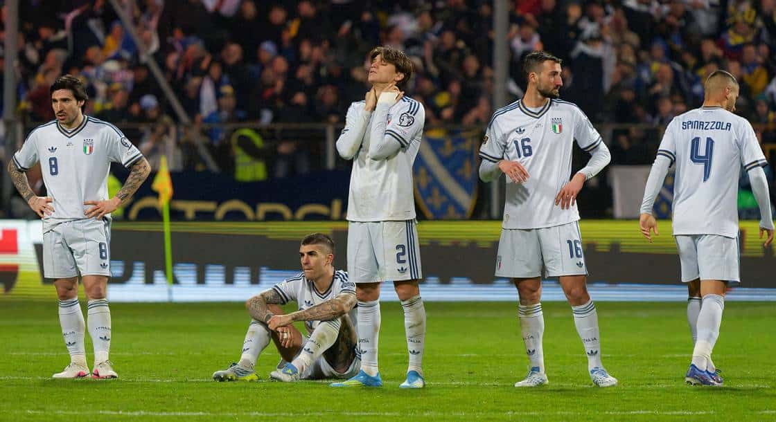 Dominată clar de Norvegia în preliminarii, echipa antrenată de Gennaro Gattuso a ajuns în infernul barajelor, unde a întâlnit Bosnia și Herțegovina la Zenica. Moise Kean a deschis scorul, dar eliminarea lui Alessandro Bastoni înainte de pauză a schimbat complet dinamica.